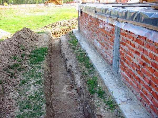 Если строительство ведется в низине, то единственно возможным вариантом будет устройство системы обводной траншеи и стока.