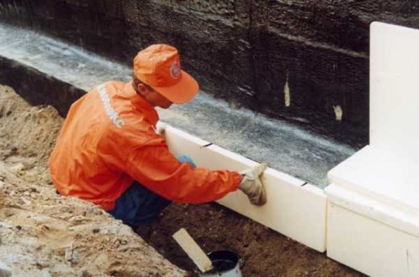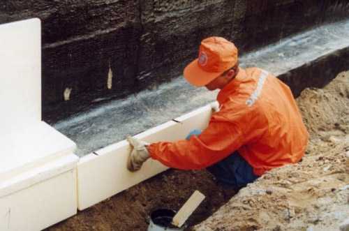 - плитами пенополистирола укрываются вертикальные стороны основания, применяя для этого клеевые составы – это утеплит фундамент и дополнительно защитит его от порчи;