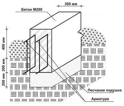 Мелкозаглубленный ленточный армированный монолитный фундамент используется для деревянных домов и бань на пучинистых грунтнах.