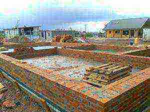 Возведение утопленного кирпичного цоколя на ленточный фундамент из железобетона.