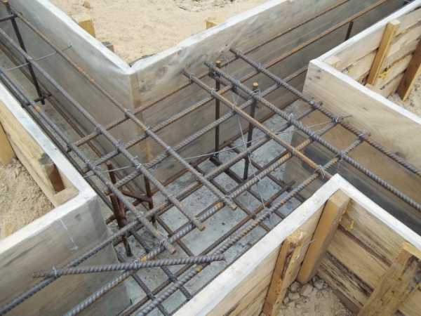 Армирование ленточного фундамента своими руками осуществляется с использованием арматуры диаметром 1,2 см. Для осуществления вязки используется проволока. Готовый каркас из арматуры укладывается на дно ямы.
