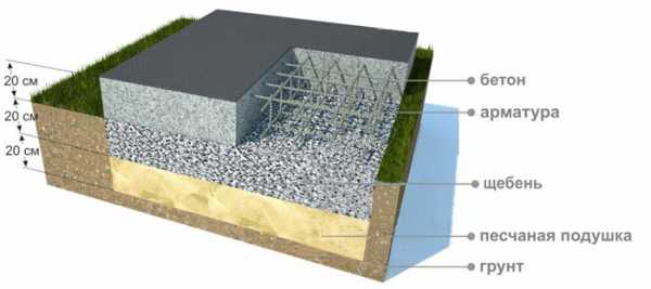 Конструкция фундаментной плиты дома собирается по типу пирога: