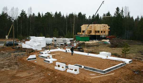 Производится разметка основания. Если фундамент заглубленный, то по разметке роется котлован.
