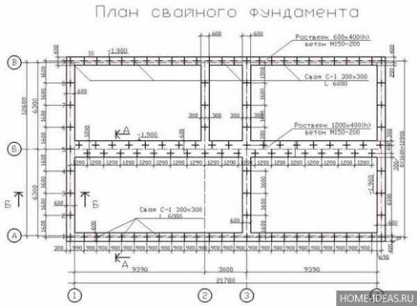Сваи размещаются с шагом 2-3м под всеми несущими стенами и перегородками