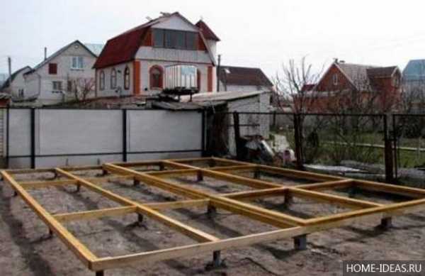 Когда все сваи будут установлены, к верхним торцам элементов привариваются горизонтально расположенные пластины, на которые укладываются и крепятся элементы обвязки фундамента. В качестве частей обвязки могут быть использованы деревянные брусья или металлические швеллера.