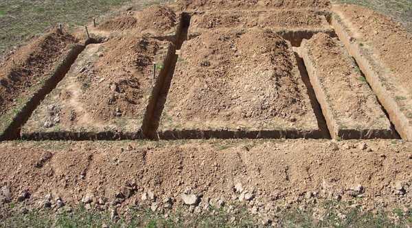 Схема устройства фундамента- выкапывание фундамента по строго отмеченным линиям и с рассчитанной глубиной погружения;