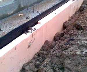 Если для утепления фундамента будет использоваться экструдированный пенополистирол, не нужно добавочно укладывать защитное покрытие для слоя гидроизоляции от механических повреждений. Для фундаментов, которые закладываются ниже глубины сезонного промерзания почвы, можно использовать немножко другую схему защиты гидроизоляционного слоя: необходимо до уровня промерзания почвы класть экструдированный пенополистирол, а ниже его использовать профилированную мембрану.