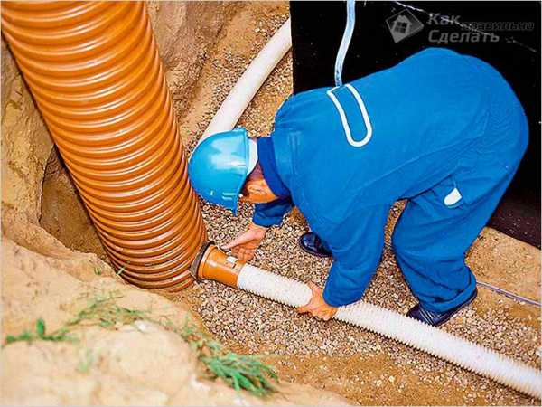 - трубы кладут с уклоном 2 см на метр в направлении коллектора или колодца;