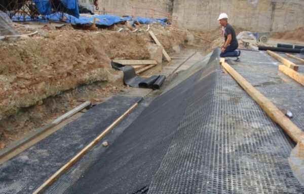 - геокомпозит, в состав которого входит синтетический геофильтр и полимерные плиты, или профилированные мембраны с хорошей водопропускной способностью.