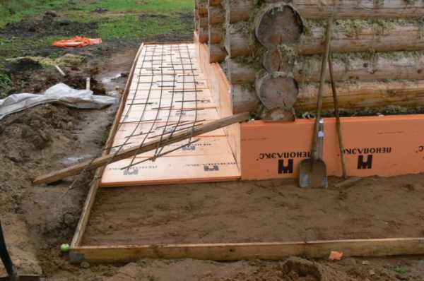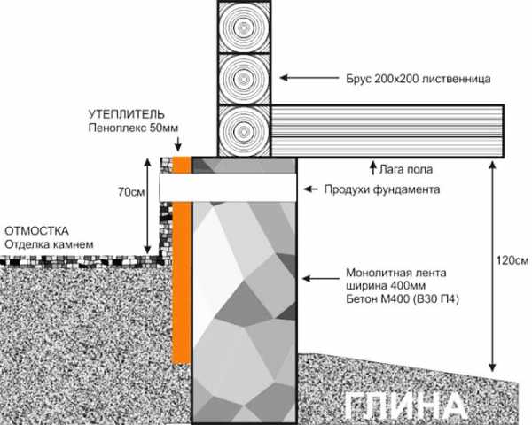 6. Теплоизоляции ленточного фундамента – аналогично вышеуказанной схеме, утеплитель нарезается на полосы и защищает основу от поступающей снизу влаги.