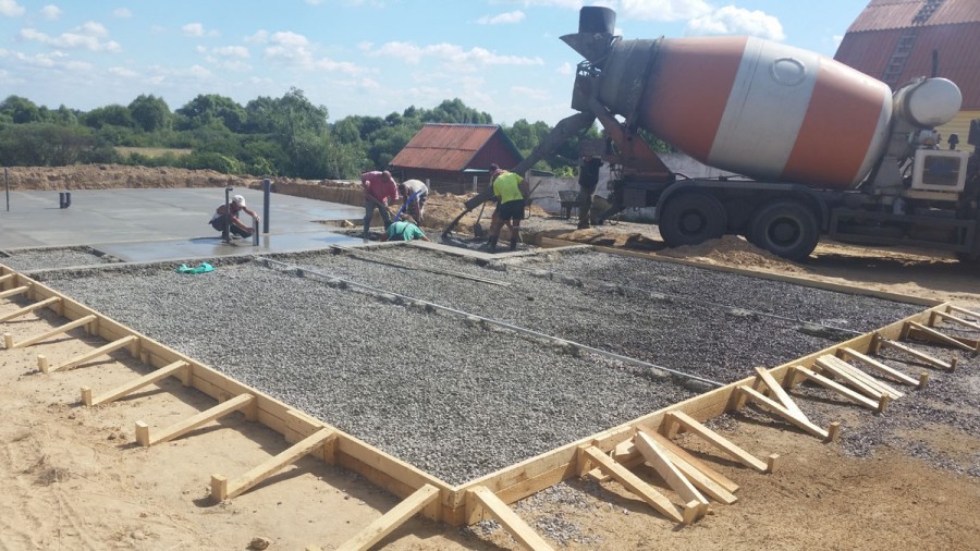 Обустройство такой плиты никогда не считалось сложной строительной задачей, но физических усилий данная работа потребует много. Иными словами, профессиональных строителей для выполнения такой работы приглашать не обязательно, но потрудиться во время заливки придется изрядно.
