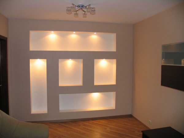Еще большее внимание можно привлечь, встроив в гипсокартонную стену оригинальную подсветку.