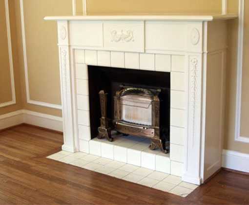 Фото декоративной стены с полками и камином