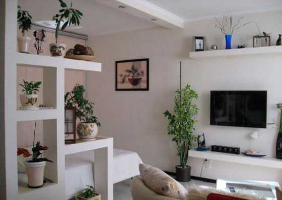 Создание перегородок с полками или нишами должно быть согласовано со стилем остальной части интерьера и может быть дополнено следующим: