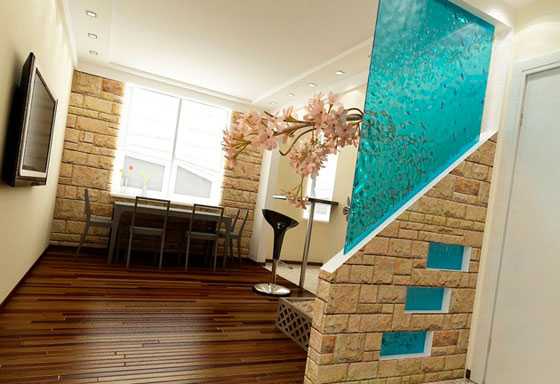 Такой вариант перегородки можно соорудить в любом помещении квартиры, исправив тем самым погрешности планировки.