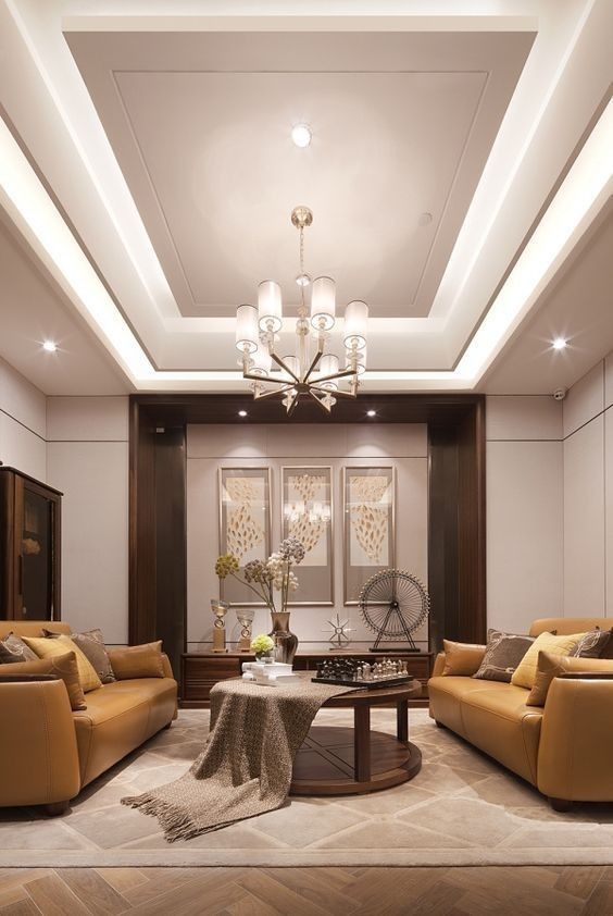 Дизайн потолка из гипсокартона в зале (гостиной)