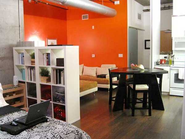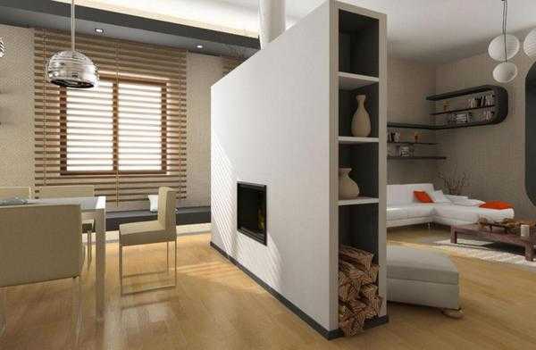 Часто делают перегородки для зонирования пространства, то есть не на всю ширину или высоту комнаты. Таким способом подчеркивается функциональное назначение части комнаты. Этот прием наиболее эффективен в квартирах с маленькими комнатами.