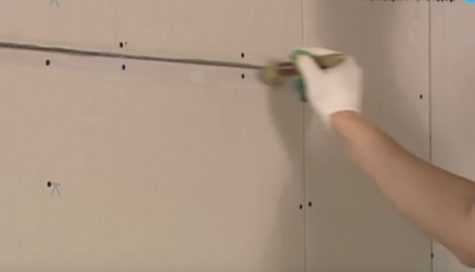 Для надежности швов на них накладывается армирующая лента. Без такой подготовки в местах соединения листов будут образовываться трещины на штукатурке.