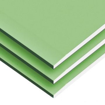 Влагостойкий гипсокартон имеет зеленое покрытие, которое делает его более устойчивым к влаге, чем обычный гипсокартон. Данный вид гипсокартона несколько дороже, и не является, водонепроницаемы, поэтому использовать его в соприкосновении с водой нельзя. Но влагостойкий гипоскартон часто применяется в качестве защитного покрытия для плитки в ограниченных влажных помещениях, таких как стены ванных комнат, подвалов, прачечных и других подсобных помещений.