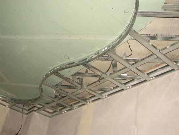 Фото — двойной каркас - В большинстве случаев, оригинальные потолки нужно крепить по небольшим участкам, поэтому по основным направляющим нужно установить нарезанные небольшие отрезки направляющих профилей. Для этого проверяете эскизы и нарезаете UD нужной длины. В зависимости от чертежей их можно гнуть, монтировать прямой, под углом и т .д.;