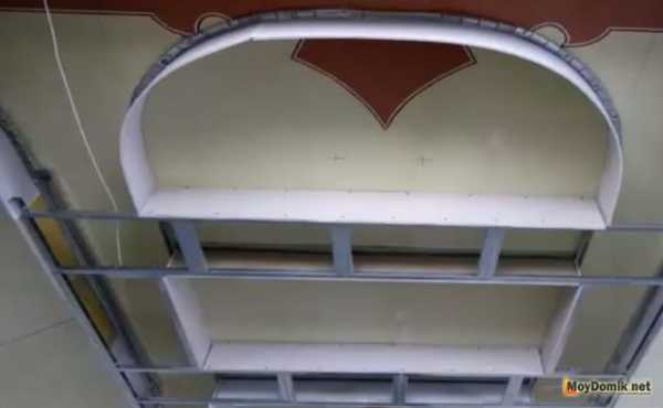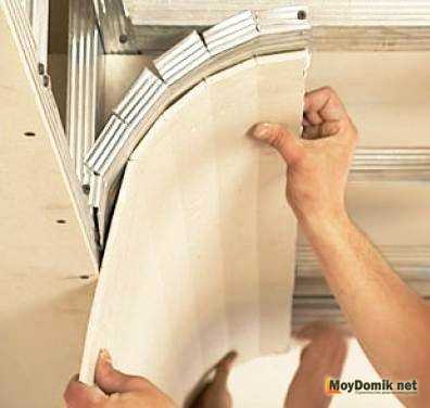 Для второго яруса, в котором не предусмотрены светильники и боковин, можно использовать арочный гипсокартон. Его толщина 6 мм.