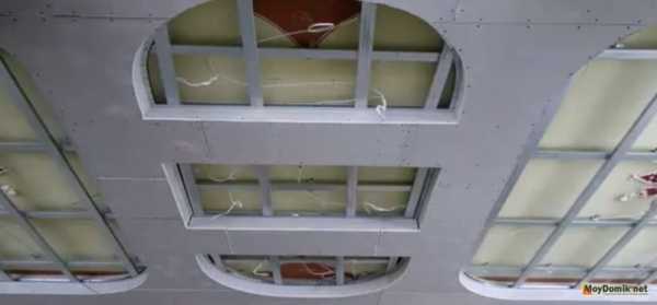 Для экономии материала и времени, в местах, где будет устанавливаться второй уровень, гипсокартон можно не подшивать.