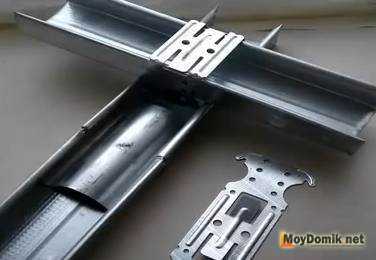- Дальше готовую конструкцию необходимо прикрутить к перемычкам. При этом «язычок» профиля должен накладываться на основании профиля.