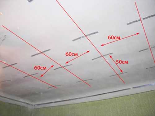 - Осуществляем разметку потолка под каркас для гипсокартона.