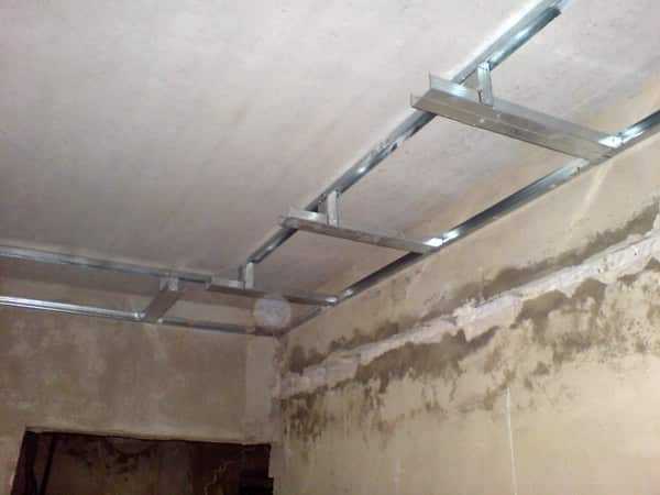 - Монтаж каркаса для гипсокартона — первый уровень.