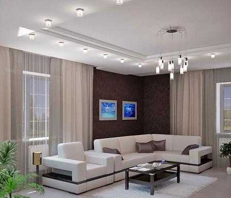 Двухуровневая конструкция с обилием светильников практически стала визитной карточкой любой комнаты в доме. Этот роскошный завершающий штрих в отделке помещения зачастую играет главную роль в интерьере.