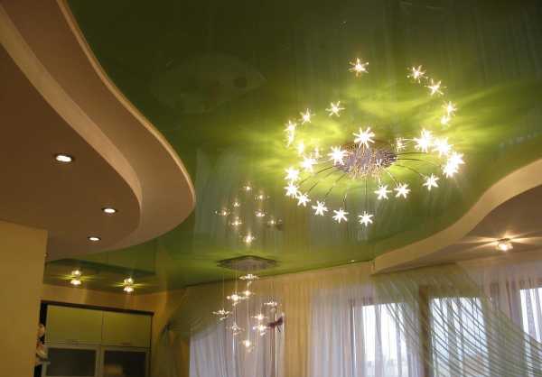 Двухуровневый потолок из гипсокартона и натяжной: фото, смешанный без гипсокартона