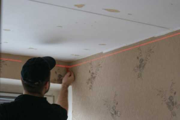 Стоит уделить этому важному этапу особое внимание, и тщательно все проделать. Необходимо отложить расстояние от самого низкорасположенного угла, двигаясь вниз, расстояние должно соответствовать расстоянию до низшего уровня потолка.