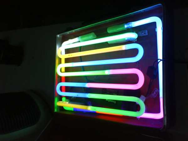Неоновые трубки заполняются смесью из инертных и светящихся газов. Их яркость зависит от силы тока, регулируемой конвектором