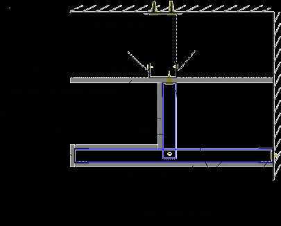 Первый несущий потолочный профиль вставляется между полками противоположных направляющих профилей, отступив от параллельной стены 10-15 см. Второй и все последующие несущие профиля запускаются между полками направляющих профилей на расстоянии друг от друга в 1200 мм. Замер производится на середине плоскости основания.