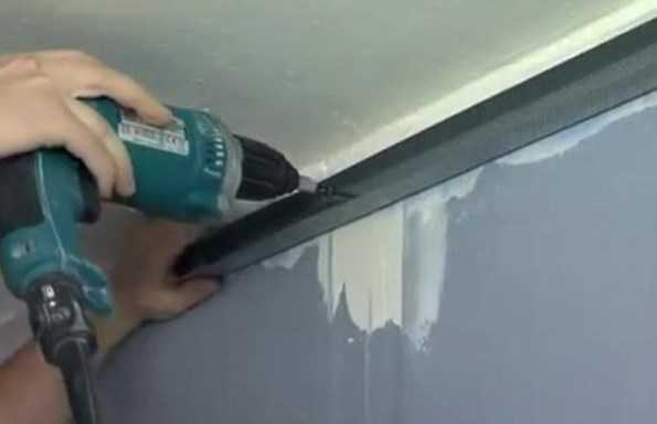 - Натягивать натяжное полотно следует строго на отмеченном уровне к вертикальной части гипсокартонного короба клипсовым креплением;