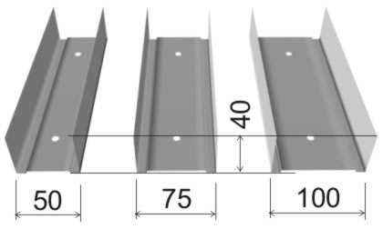 Пять вариантов ширины — 50, 75, 100, 125 и 150. Толщина металла – 2, высота полки – 40.