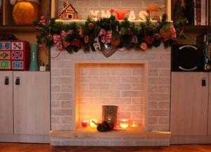 Наиболее подходящим в условиях квартиры является второй тип. Сделать недорогую конструкцию можно из гипсокартона или простого картона. При умелом оформлении трудно будет отличить подделку от настоящего камина.