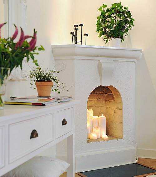 Первый и основной плюс такой самодельной конструкции заключается в универсальности. Ее можно использовать в любом по площади помещению – как нефункциональное украшение, как псевдо-очаг со свечами или как активный элемент интерьера, где пляшут искусственные язычки пламени. Независимо от того, каким он будет по размеру – миниатюрным или достаточно громоздким – это уже яркий акцент, который неизменно привлекает к себе внимание. А каким его сделать – вы можете увидеть в нашей фотогалерее.