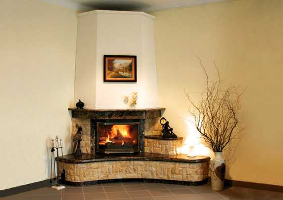 Важно отметить, что установка углового самодельного камина отличается рядом особенностей. Он выглядит стильно, требует меньшее количество материалов, помогает сэкономить место. Но у такого варианта есть минусы:
