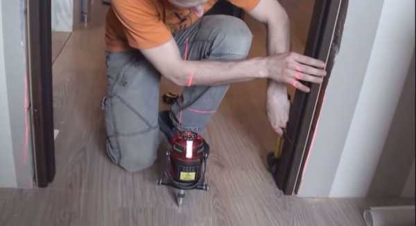 - Разметка. Выполняется более точно с помощью лазера. Сначала отмечается насечки на полу в месте предполагаемого стоечного профиля, затем по сторонам дверных проемов и стенах.