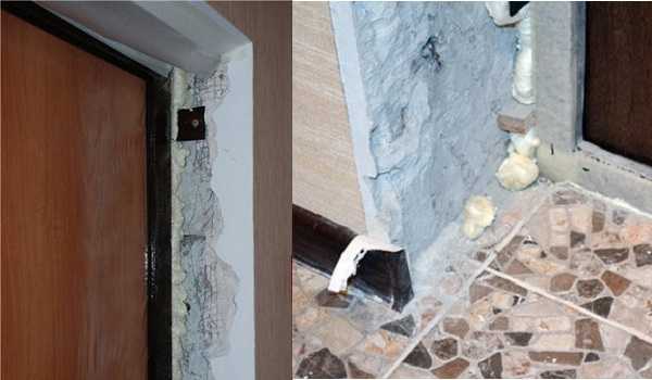 Оформление дверных откосов своими руками начинается с заделки щелей между дверной коробкой и стеной