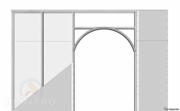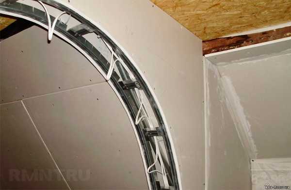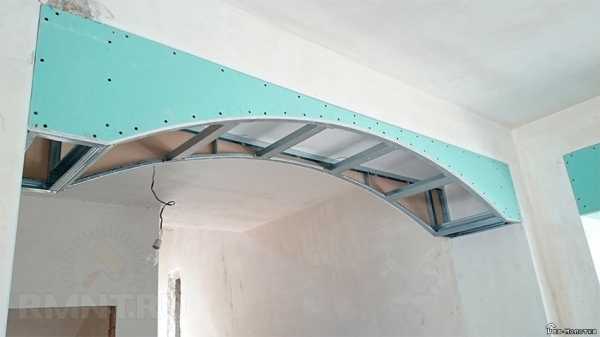 В любом случае, арка, представляет собой каркас из металлопрофиля, который обшивается листами гипсокартона. Специфика каркаса в данном случае, обусловлена тем, что металлопрофиль приходится изгибать, придавая ему нужный радиус скругления.
