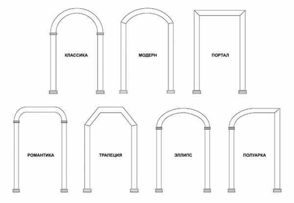 1. Классическая округлая арка. 2. Модерн. 3. Романтика. 4. Эллипс. 5. Трапеция. 6. Полуарка