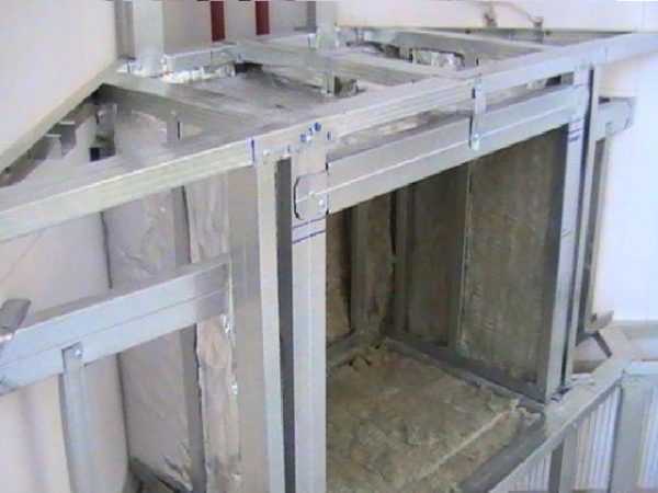 - После того как расчёты сделаны, и схема камина составлена, начинайте монтировать каркас. Для него сгодится потолочный профиль, к тому же он дешевле.