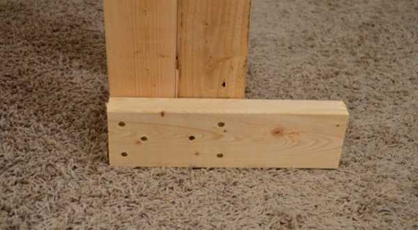 - Надежно закрепляются с помощью дюбелей передние стойки. Расстояние между передом и задом — это глубина готового изделия;