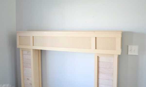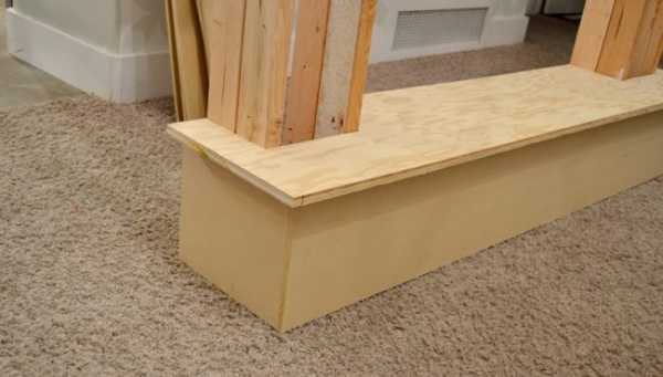 - Далее прикрепляем сверху на камин полку из ламинированного ДСП.