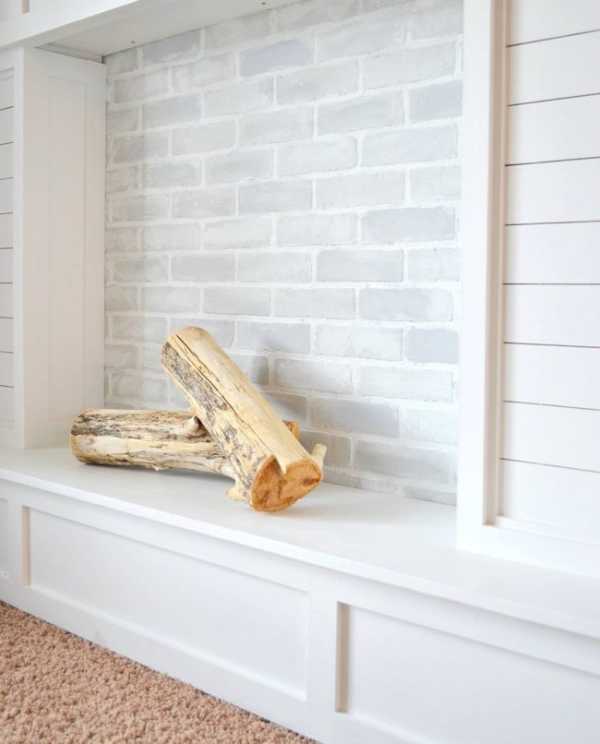 Чтобы придать камину кипельную белизну, покрыла весь камень белой интерьерной краской. После высыхания обработала камень акриловым бесцветным лаком с эффектом мокрого камня, чтобы камень можно было протирать от пыли.