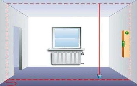 Схема перегородкиЕсли же у вас нет под рукой данного инструмента, используйте другой метод. Для этого потребуется отвес, который спускают с потолка. После чего на поверхности отмечают две или три точки. Через них проводят контурную линию на потолке.