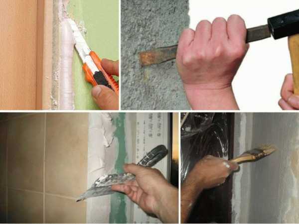 - Для начала нужно хорошо очистить поверхность от старой отделки и обрезать монтажную пену.