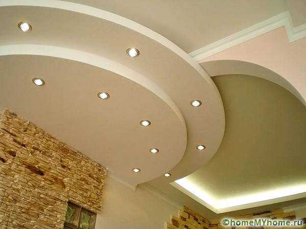 Точечные светильникиВозможности комбинации гипсокартона с другими материалами